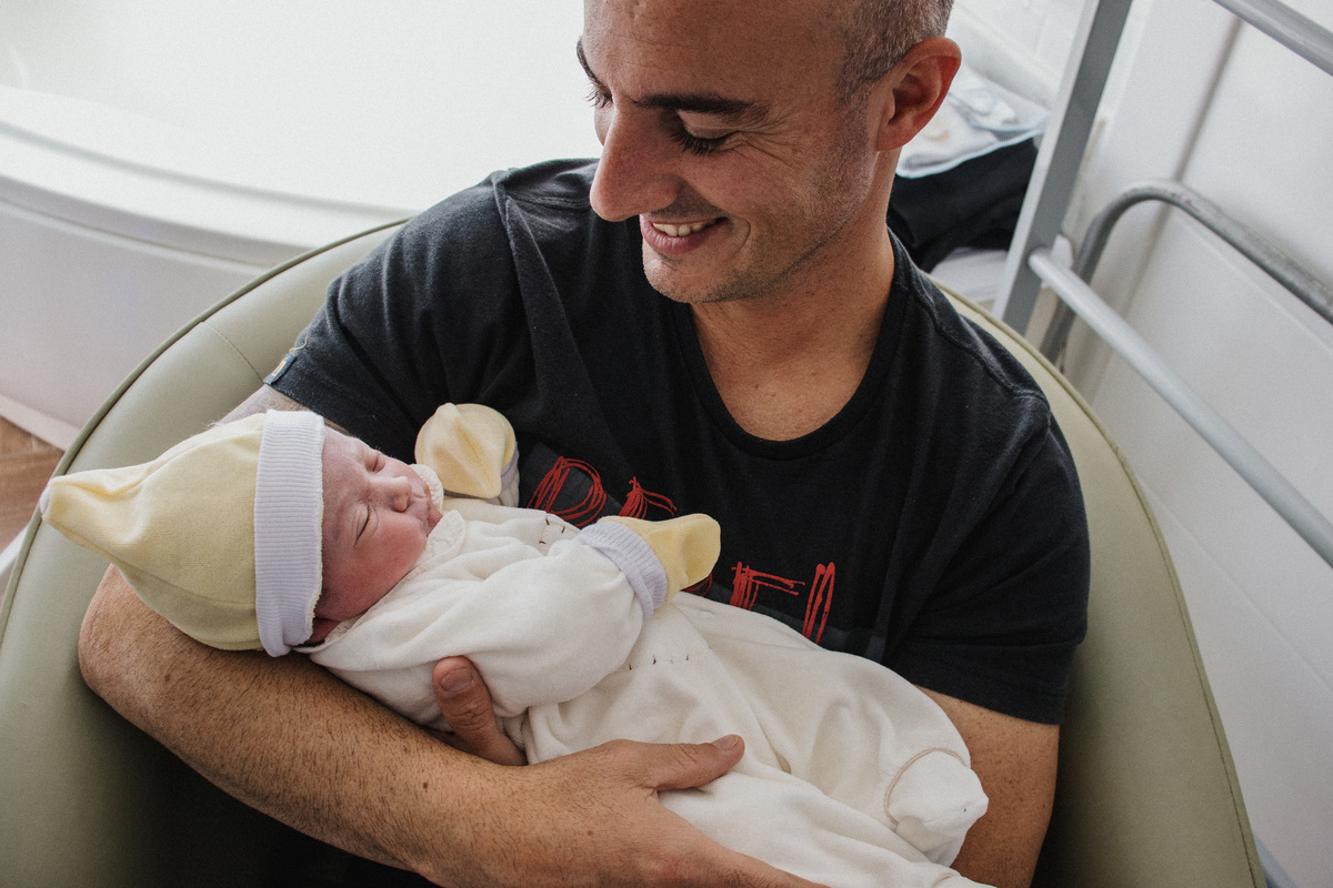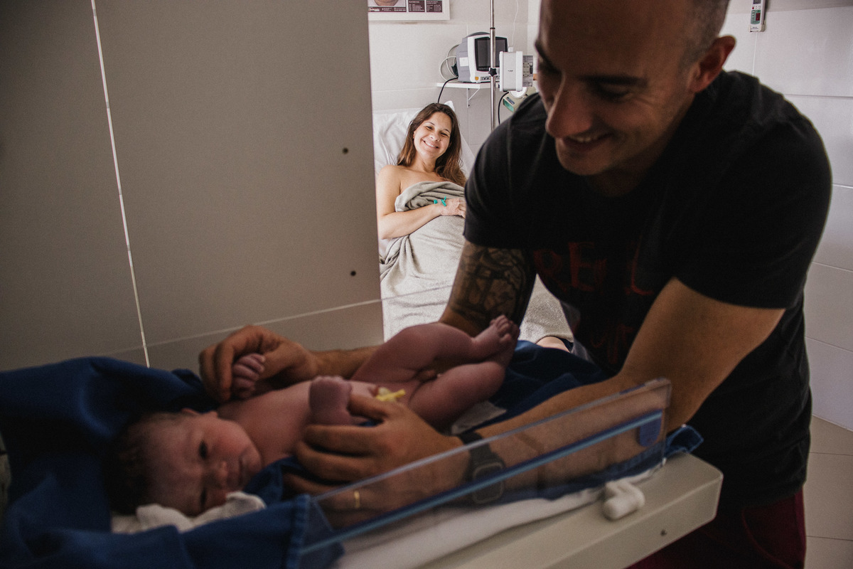 A emoçao transbordava nos olhos dos pais com a chegada do pequeno, cheio de saúde e todo fofinho.